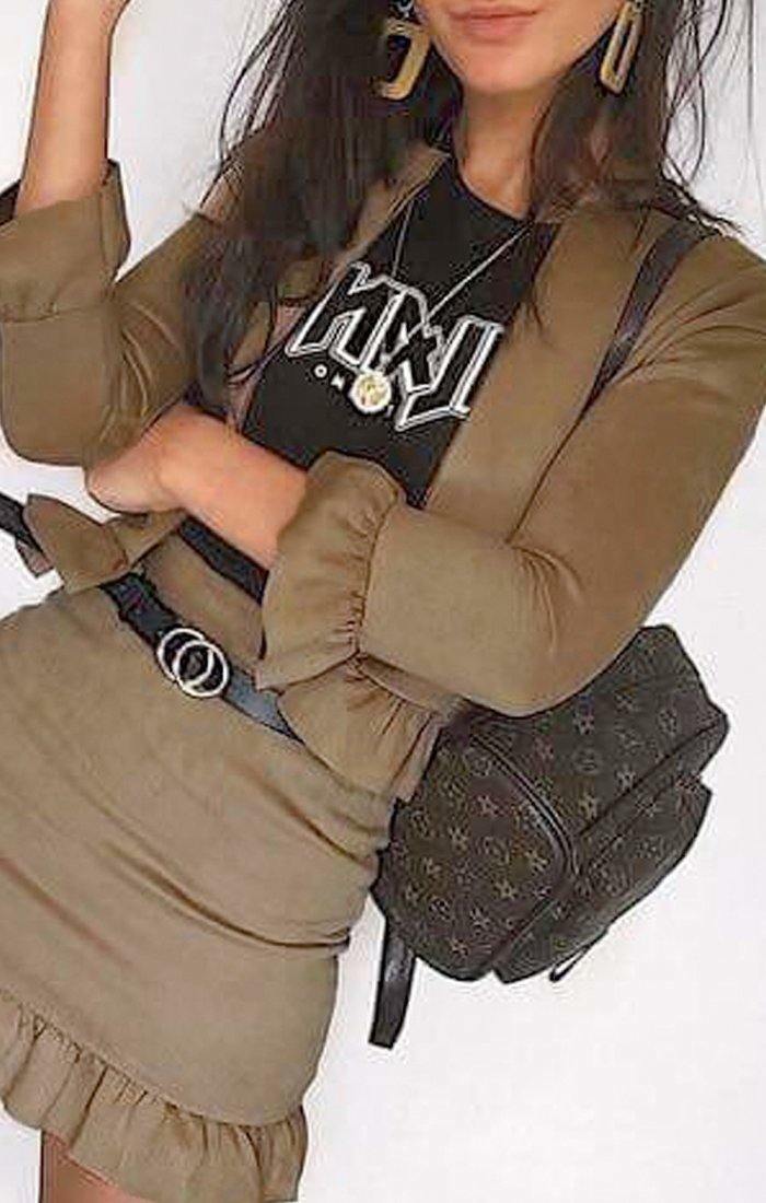 Perfect your outfit with the Camel Suede Frill Blazer! Featuring frill sleeves and hem for a cute finish! This is the perfect way to finish off any outfit this season. If you want that sophisticated look with a cute styling piece then this is the number one go to for you. With the perfect frill detailing making a cute touch the Camel blazer is ideal for all occasions. If you want a classy outfit for drinks with the girls or require a more formal presentation while wanting to keep that look ultra femme then this cute blazer is everything you could dream of. Wear with a blouse and jeans for that go to outfit, or, for the ultimate girly vibes team it up with the matching suede frill skirt! Stick on your reliable barely theres for a reserved formal look or throw on your fave sky-high heels for that must have look for the year. No matter what you pair this suede blazer up with it is simply an unbeatable style this season. Available in sizes 6 (EU 34) (US 2) - 14 (EU 42) (US 10)