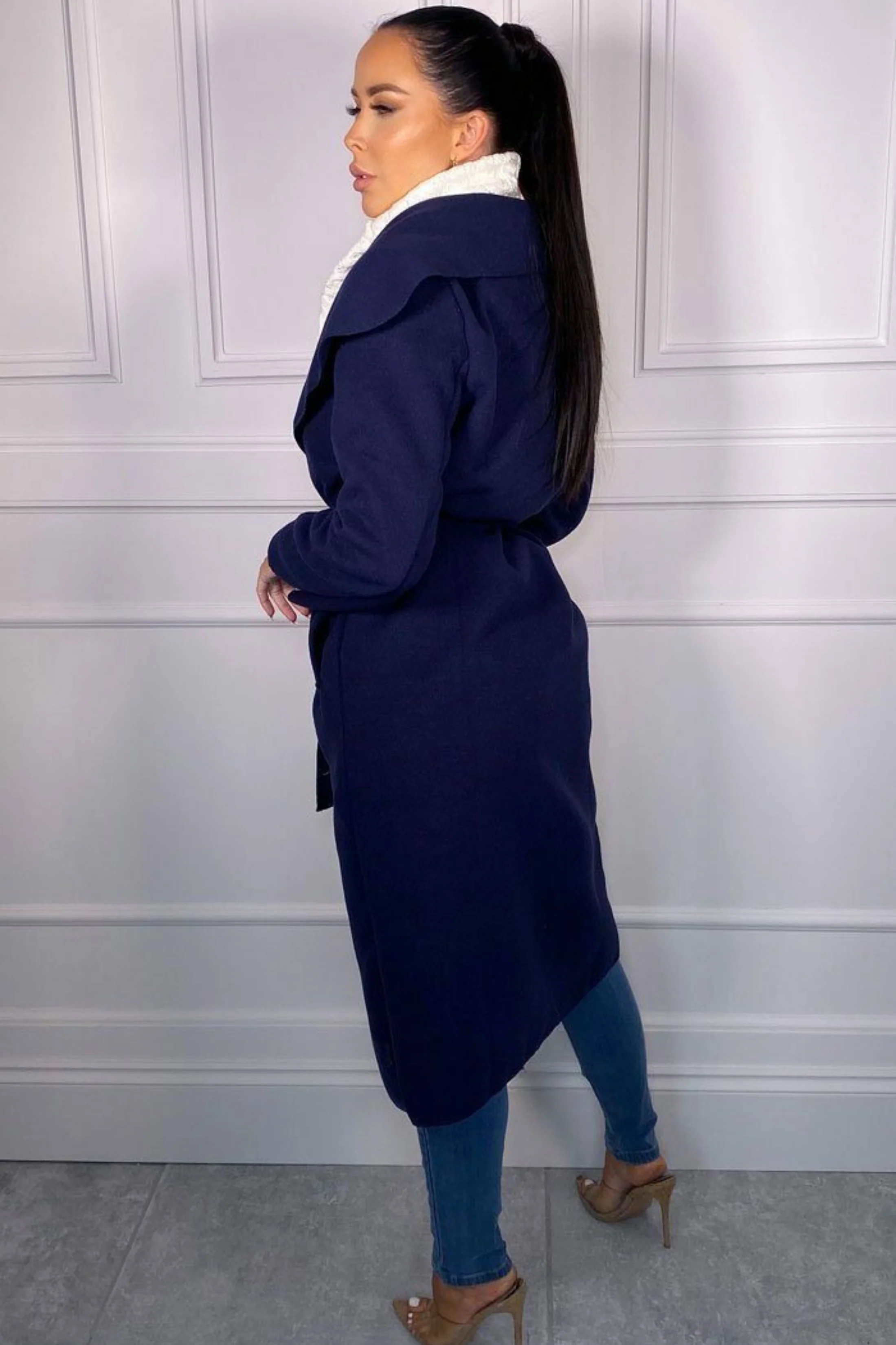 Navy Waterfall Duster Belted Long Coat - Pola