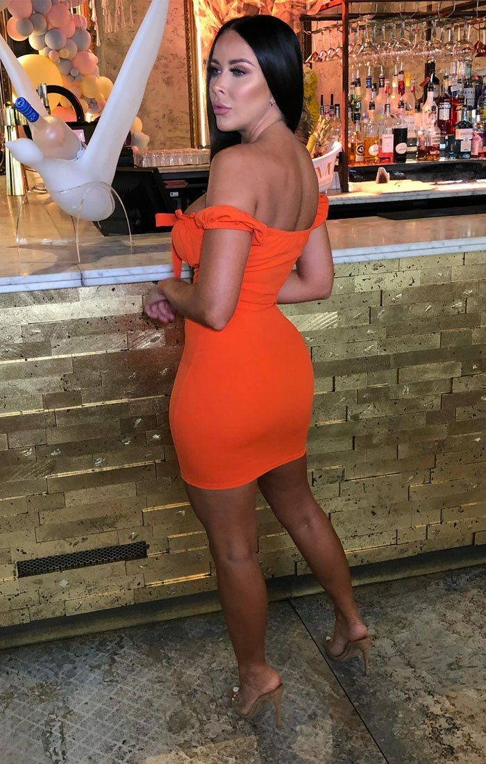 Orange Milkmaid Bardot Bodycon Mini Dress - Jett