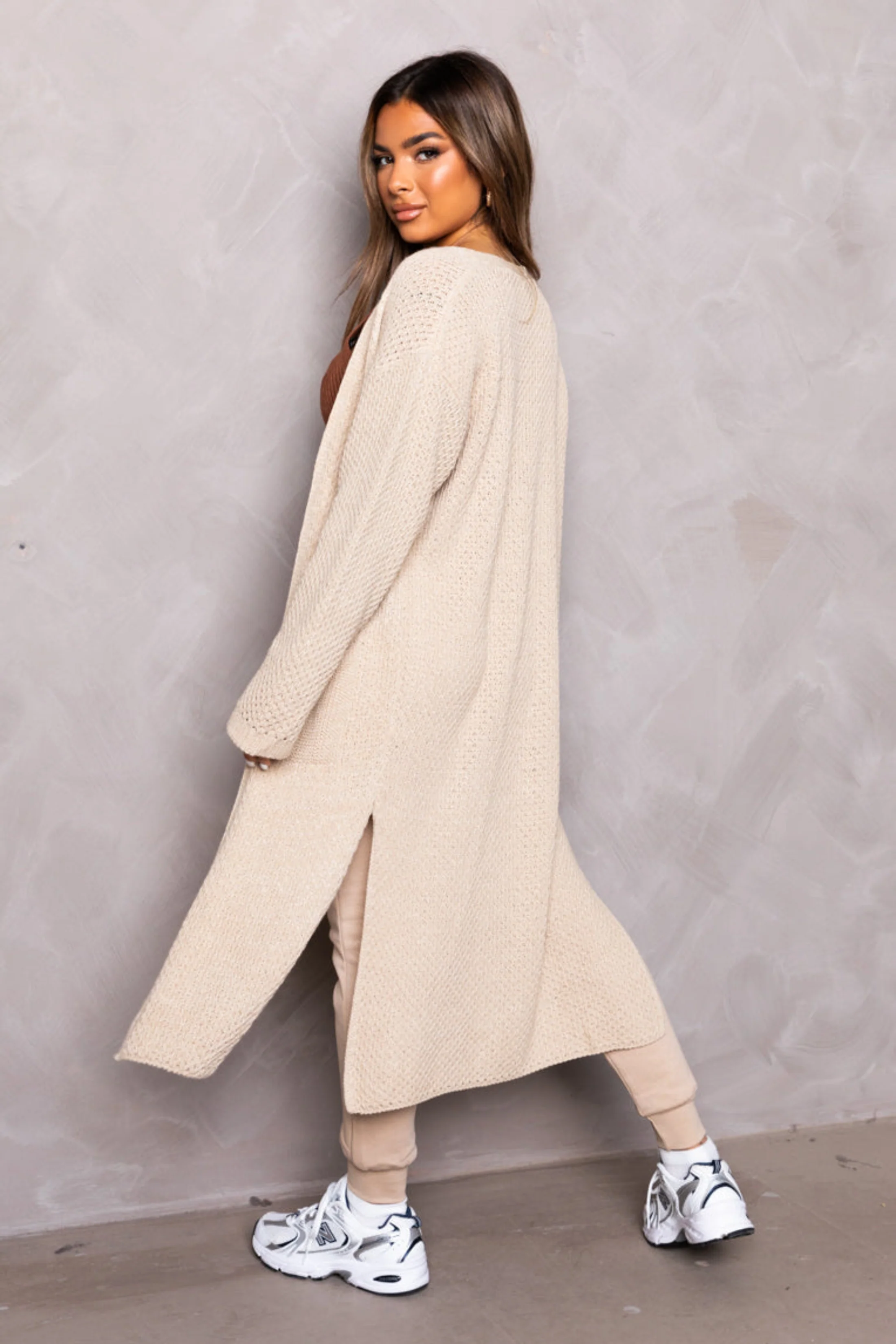 Stone Knitted Long Sleeve Side Split Longline Midi Cardigan - Avery