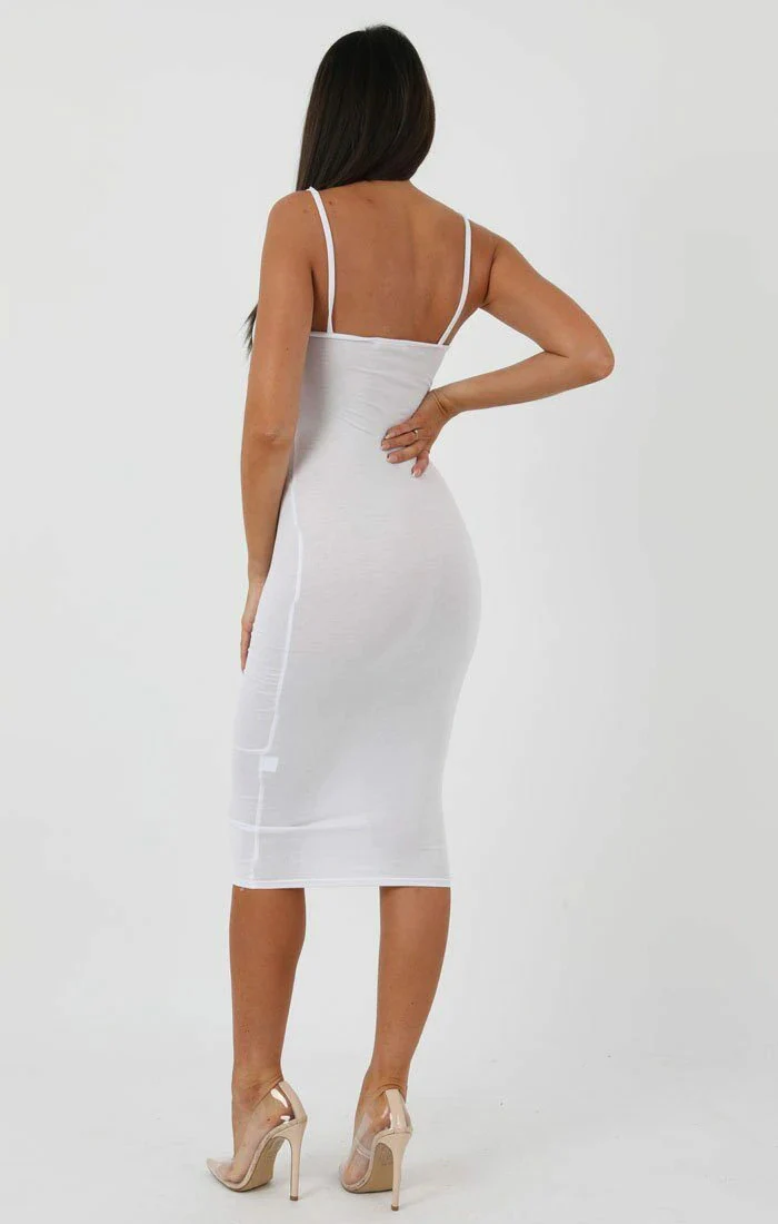 White Strappy Bodycon Midi Dress - Poppy